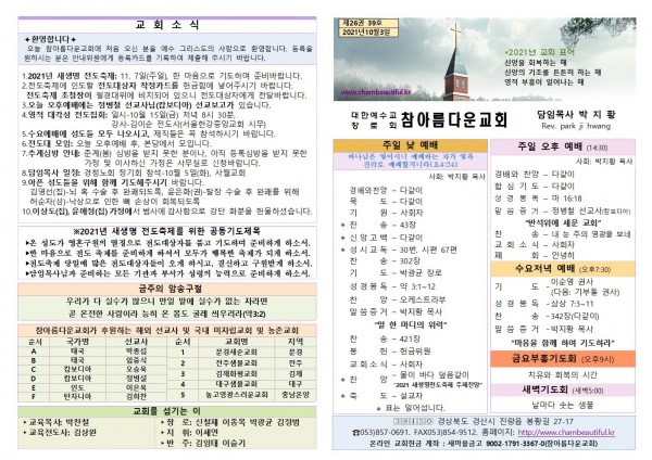 주보-2021년 10월 3일 페이지 정보 작성자 참아름다운교회 댓글 0건 조회 4,367회 21-10-02 11:51 본문 주보-2021년 10월 3일 목 록 답 변 이전글주보-2021년 10월 10일 21.10.09 다음글주보-2021년 9월 26일 21.09.25 댓글목록 댓글목록 등록된 댓글이 없습니다.