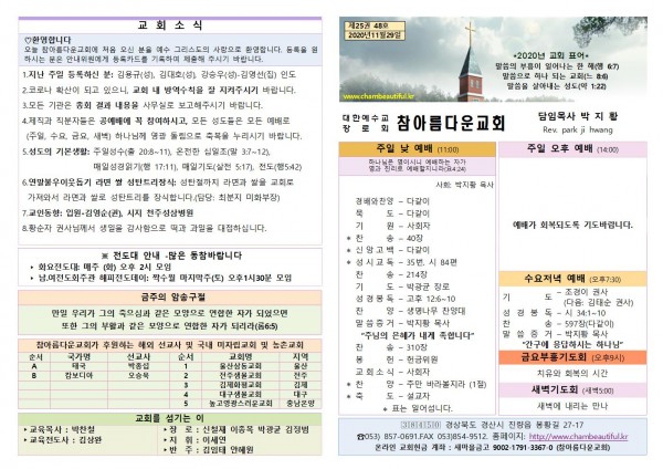 주보-2020년 11월 29일 페이지 정보 작성자 참아름다운교회 댓글 0건 조회 5,889회 20-11-28 13:32 본문 주보-2020년 11월 29일 목 록 답 변 이전글주보-2020년 12월 6일 20.12.05 다음글주보-2020년 11월 22일 20.11.21 댓글목록 댓글목록 등록된 댓글이 없습니다.