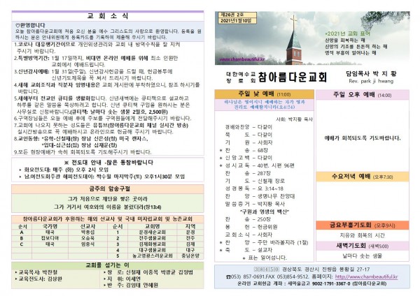 주보-2021년 1월 10일 페이지 정보 작성자 참아름다운교회 댓글 0건 조회 5,616회 21-01-09 12:11 본문 주보-2021년 1월 10일 목 록 답 변 이전글주보-2021년 1월 17일 21.01.16 다음글주보-2021년 1월 3일 21.01.03 댓글목록 댓글목록 등록된 댓글이 없습니다.