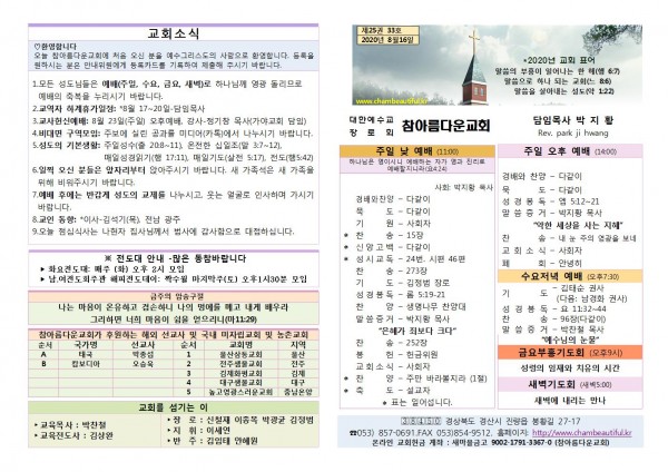 주보-2020년 8월 16일 페이지 정보 작성자 참아름다운교회 댓글 0건 조회 6,338회 20-08-15 13:19 본문 주보-2020년 8월 16일 목 록 답 변 이전글주보-2020년 8월 23일 20.08.22 다음글주보-2020년 8월 9일 20.08.09 댓글목록 댓글목록 등록된 댓글이 없습니다.
