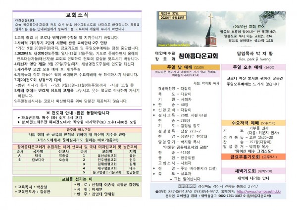 주보-2020년 9월 13일 페이지 정보 작성자 참아름다운교회 댓글 0건 조회 6,209회 20-09-12 13:58 본문 주보-2020년 9월 13일 목 록 답 변 이전글주보-2020년 9월 20일 20.09.19 다음글주보-2020년 9월 6일 20.09.05 댓글목록 댓글목록 등록된 댓글이 없습니다.