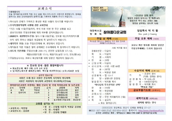 주보-2020년 10월 4일 페이지 정보 작성자 참아름다운교회 댓글 0건 조회 6,063회 20-10-03 12:00 본문 주보-2020년 10월 4일 목 록 답 변 이전글주보-2020년 10월 11일 20.10.10 다음글주보-2020년 9월 27일 20.09.29 댓글목록 댓글목록 등록된 댓글이 없습니다.