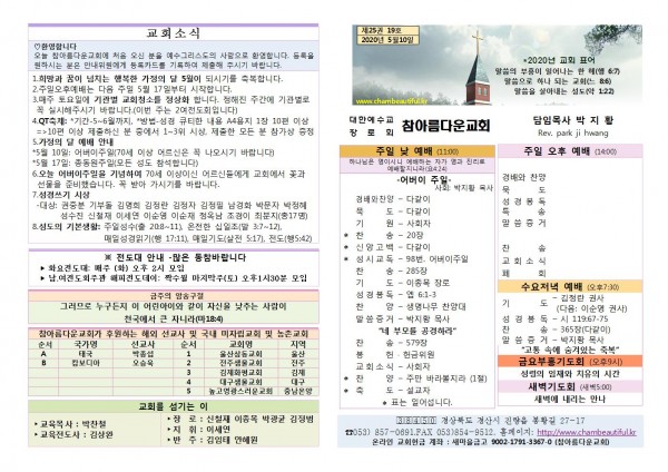 주보-2020년 5월 10일 페이지 정보 작성자 참아름다운교회 댓글 0건 조회 7,178회 20-05-09 13:44 본문 주보-2020년 5월 10일 목 록 답 변 이전글주보-2020년 5월 17일 20.05.16 다음글주보-2020년 5월 3일 20.05.02 댓글목록 댓글목록 등록된 댓글이 없습니다.