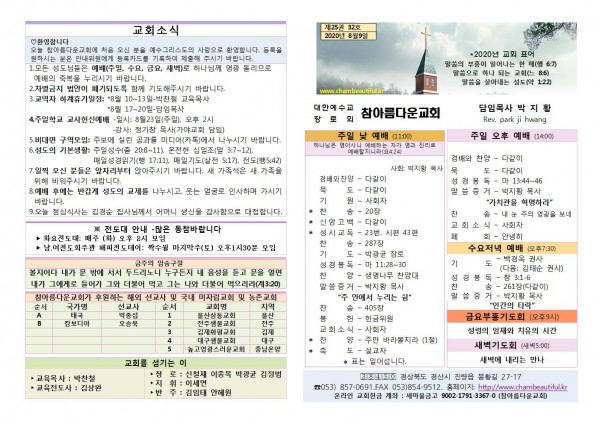주보-2020년 8월 9일 페이지 정보 작성자 참아름다운교회 댓글 0건 조회 6,334회 20-08-09 12:46 본문 주보-2020년 8월 9일 목 록 답 변 이전글주보-2020년 8월 16일 20.08.15 다음글주보-2020년 8월 2일 20.08.01 댓글목록 댓글목록 등록된 댓글이 없습니다.