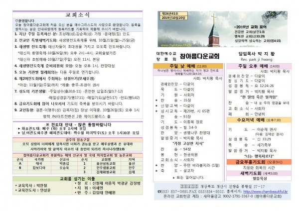 주보- 2019년 10월 20일 페이지 정보 작성자 참아름다운교회 댓글 0건 조회 8,675회 19-10-20 13:07 본문 주보- 2019년 10월 20일 목 록 답 변 이전글주보- 2019년 10월 27일 19.10.27 다음글주보- 2019년 10월 13일 19.10.13 댓글목록 댓글목록 등록된 댓글이 없습니다.