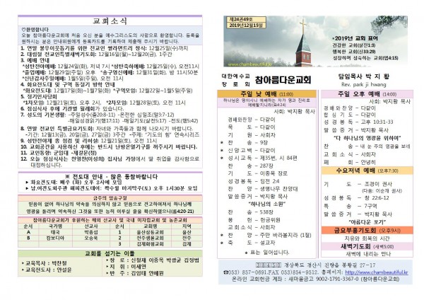 주보- 2019년 12월 15일 페이지 정보 작성자 참아름다운교회 댓글 0건 조회 8,105회 19-12-15 12:58 본문 주보- 2019년 12월 15일 목 록 답 변 이전글주보- 2019년 12월 22일 19.12.22 다음글주보- 2019년 12월 8일 19.12.08 댓글목록 댓글목록 등록된 댓글이 없습니다.