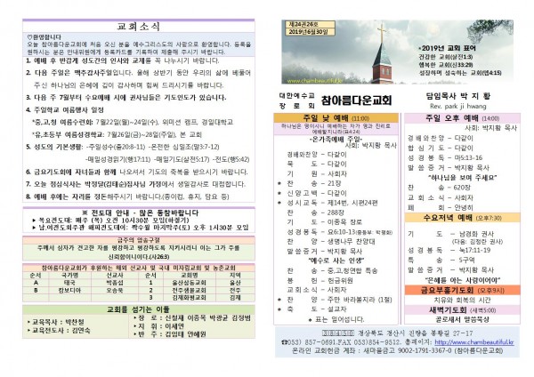 주보- 2019년 6월 30일 페이지 정보 작성자 참아름다운교회 댓글 0건 조회 9,838회 19-06-30 13:41 본문 주보- 2019년 6월 30일 목 록 답 변 이전글주보- 2019년 7월 7일 19.07.07 다음글주보- 2019년 6월 23일 19.06.23 댓글목록 댓글목록 등록된 댓글이 없습니다.