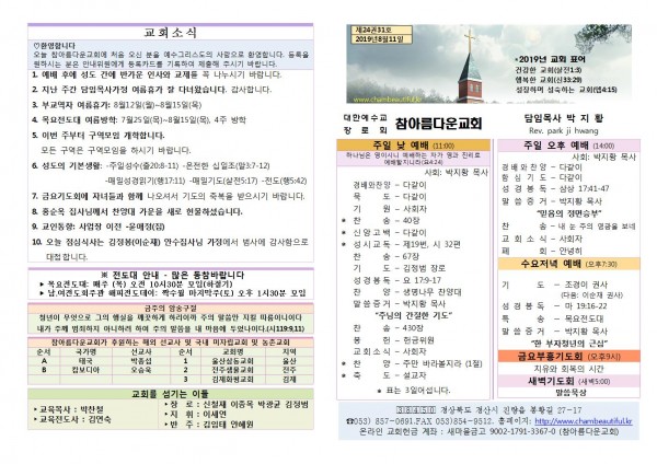 주보- 2019년 8월 11일 페이지 정보 작성자 참아름다운교회 댓글 0건 조회 9,184회 19-08-11 13:41 본문 주보- 2019년 8월 11일 목 록 답 변 이전글주보- 2019년 8월 18일 19.08.18 다음글주보- 2019년 8월 4일 19.08.04 댓글목록 댓글목록 등록된 댓글이 없습니다.