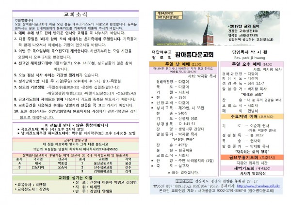주보- 2019년 8월 18일 페이지 정보 작성자 참아름다운교회 댓글 0건 조회 9,254회 19-08-18 13:12 본문 주보- 2019년 8월 18일 목 록 답 변 이전글주보- 2019년 8월 25일 19.08.25 다음글주보- 2019년 8월 11일 19.08.11 댓글목록 댓글목록 등록된 댓글이 없습니다.