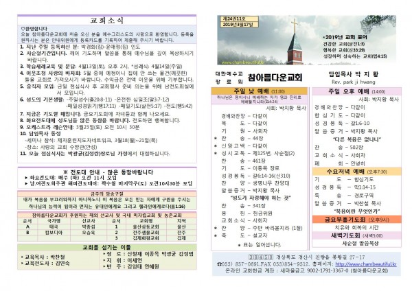 주보- 2019년 3월 17일 페이지 정보 작성자 참아름다운교회 댓글 0건 조회 10,634회 19-03-17 17:54 본문 주보- 2019년 3월 17일 목 록 답 변 이전글주보- 2019년 3월 24일 19.03.29 다음글주보- 2019년 3월 10일 19.03.10 댓글목록 댓글목록 등록된 댓글이 없습니다.