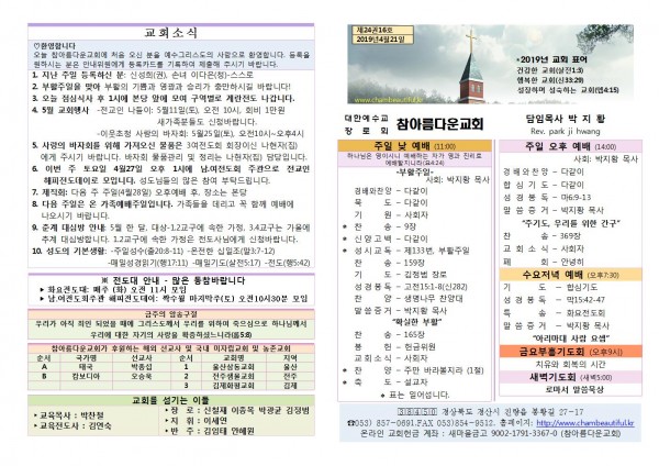 주보- 2019년 4월 21일 페이지 정보 작성자 참아름다운교회 댓글 0건 조회 10,272회 19-04-23 04:31 본문 주보- 2019년 4월 21일 목 록 답 변 이전글주보- 2019년 4월 28일 19.04.28 다음글주보- 2019년 4월 14일 19.04.14 댓글목록 댓글목록 등록된 댓글이 없습니다.