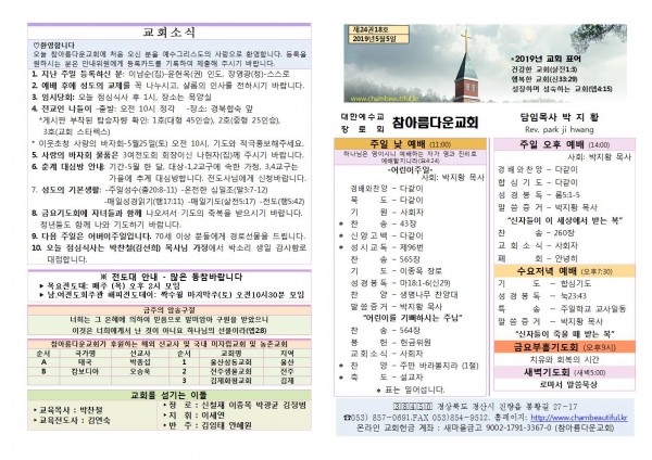 주보- 2019년 5월 5일 페이지 정보 작성자 참아름다운교회 댓글 0건 조회 10,345회 19-05-05 13:57 본문 주보- 2019년 5월 5일 목 록 답 변 이전글주보- 2019년 5월 12일 19.05.11 다음글주보- 2019년 4월 28일 19.04.28 댓글목록 댓글목록 등록된 댓글이 없습니다.