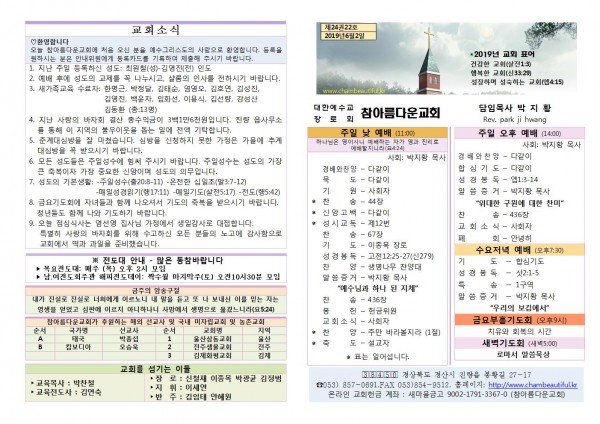 주보- 2019년 6월 2일 페이지 정보 작성자 참아름다운교회 댓글 0건 조회 10,116회 19-06-02 13:28 본문 주보- 2019년 6월 2일 목 록 답 변 이전글주보- 2019년 6월 9일 19.06.09 다음글주보- 2019년 5월 26일 19.05.26 댓글목록 댓글목록 등록된 댓글이 없습니다.