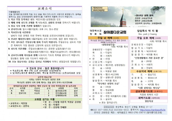 주보- 2019년 6월 9일 페이지 정보 작성자 참아름다운교회 댓글 0건 조회 9,989회 19-06-09 13:38 본문 주보- 2019년 6월 9일 목 록 답 변 이전글주보- 2019년 6월 16일 19.06.15 다음글주보- 2019년 6월 2일 19.06.02 댓글목록 댓글목록 등록된 댓글이 없습니다.