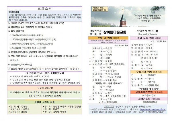 주보-2018년12월 2일 페이지 정보 작성자 참아름다운교회 댓글 0건 조회 10,246회 18-12-04 11:19 본문 . 목 록 답 변 이전글주보-2018년 12월 9일 18.12.11 다음글주보-2018년 11월 25일 18.11.25 댓글목록 댓글목록 등록된 댓글이 없습니다.