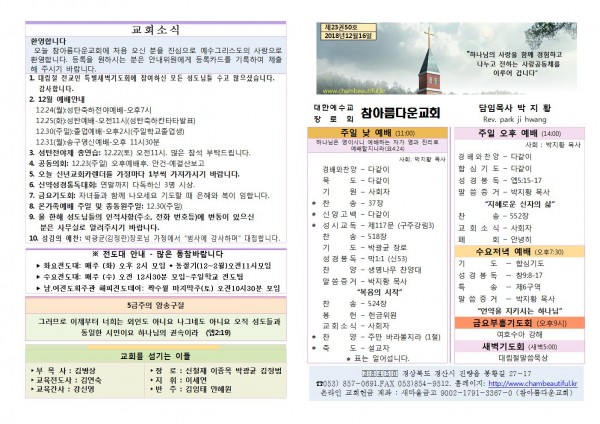 주보-2018년 12월 16일 페이지 정보 작성자 참아름다운교회 댓글 0건 조회 10,311회 18-12-18 11:40 본문 지난주일 주보입니다. 목 록 답 변 이전글주보-2018년 12월 23일 18.12.26 다음글주보-2018년 12월 9일 18.12.11 댓글목록 댓글목록 등록된 댓글이 없습니다.