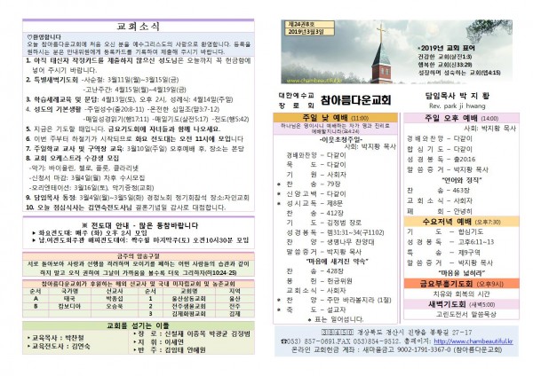 주보- 2019년 3월 3일 페이지 정보 작성자 참아름다운교회 댓글 0건 조회 10,585회 19-03-03 13:50 본문 주보- 2019년 3월 3일 목 록 답 변 이전글주보- 2019년 3월 10일 19.03.10 다음글주보- 2019년 2월 24일 19.02.24 댓글목록 댓글목록 등록된 댓글이 없습니다.
