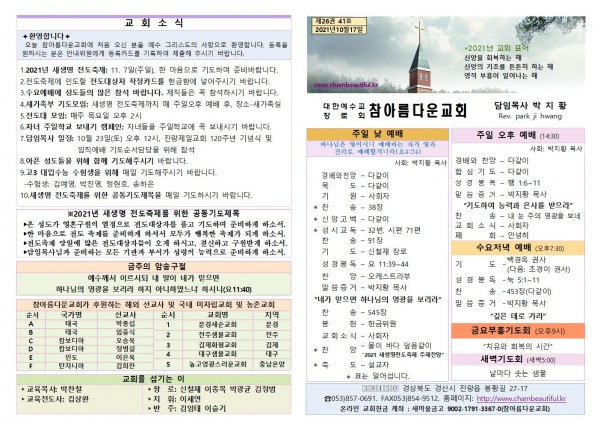 주보-2021년 10월 17일 페이지 정보 작성자 참아름다운교회 댓글 0건 조회 4,964회 21-10-16 13:15 본문 주보-2021년 10월 17일 목 록 답 변 이전글주보-2021년 10월 24일 21.10.23 다음글주보-2021년 10월 10일 21.10.09 댓글목록 댓글목록 등록된 댓글이 없습니다.