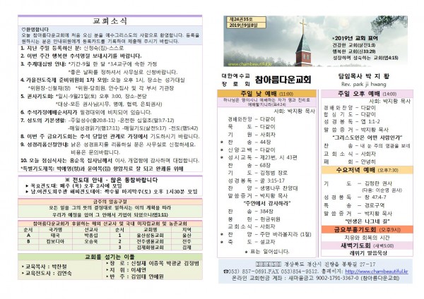 주보- 2019년 9월 8일 페이지 정보 작성자 참아름다운교회 댓글 0건 조회 9,589회 19-09-08 13:17 본문 주보- 2019년 9월 8일 목 록 답 변 이전글주보- 2019년 9월 15일 19.09.15 다음글주보- 2019년 9월 1일 19.09.01 댓글목록 댓글목록 등록된 댓글이 없습니다.